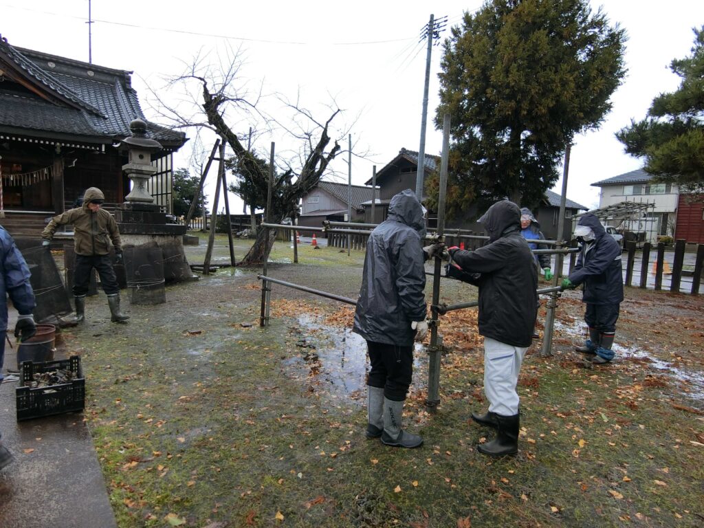 12月7日(日)、総代役員により大晦日の浄火場(古神札等のお焚き上げ場)の設営を行いました。