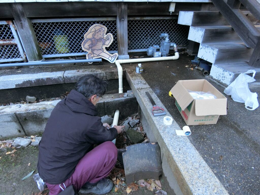 年末の積雪に備え、参拝者の皆様に安全にご参拝いただくため、参道の消雪パイプとポンプの取替工事を実施いたしました。(12月8日(月)~9日(火))