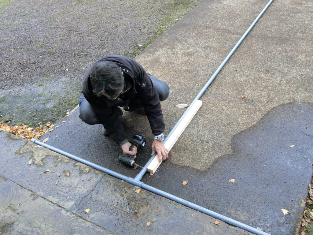 当日は冷たい雨が降るあいにくの天候でしたが、役員の皆様の献身的なご奉仕により、1時間余りで無事に設置を終えることができました。